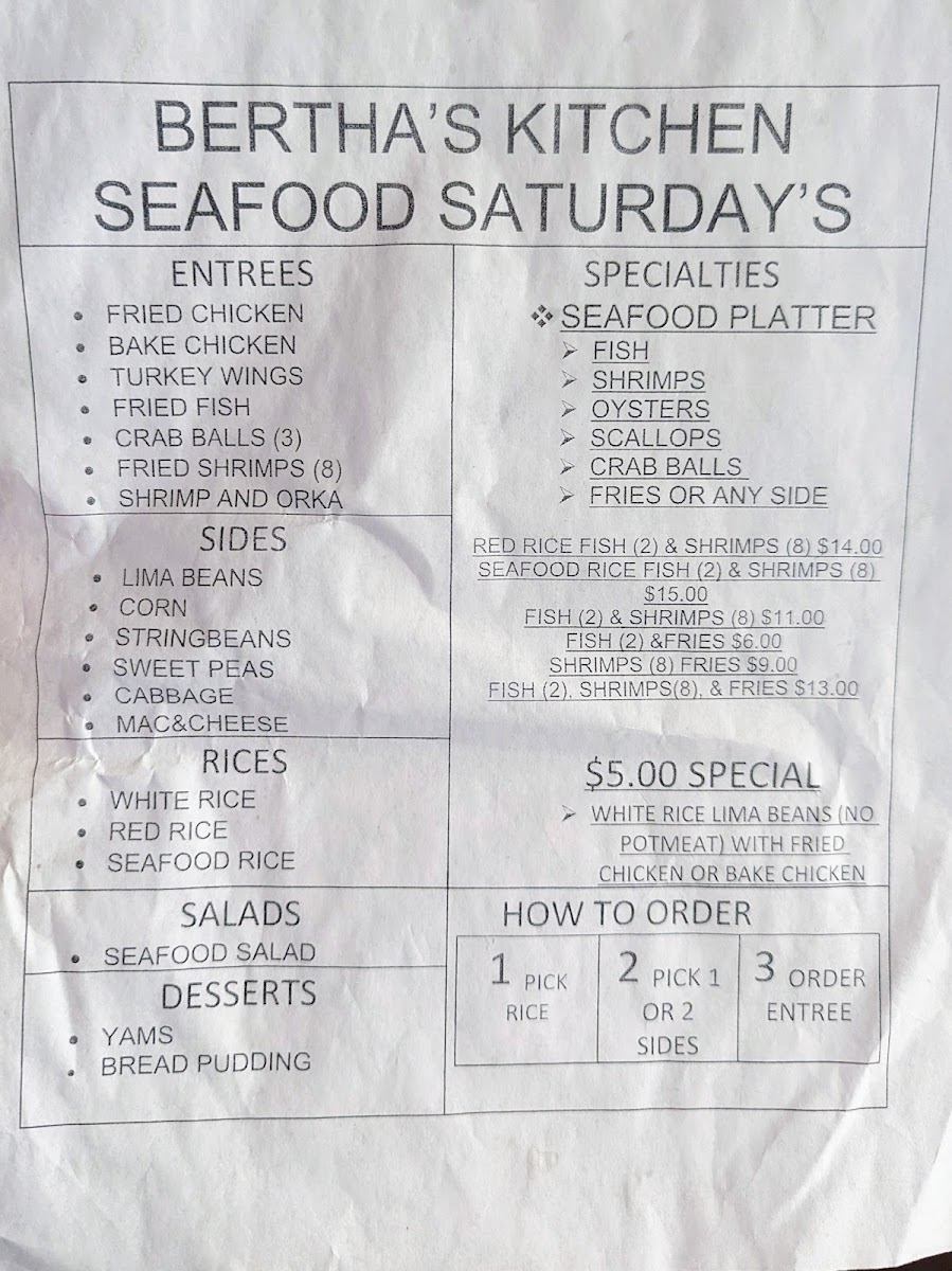 To sum it up, Bertha's Kitchen is more than just a restaurant; it is a celebration of southern heritage and wholesome flavors. With every dish carefully prepared and served with a smile, it invites you to relax and savor the very essence of home-cooked southern cuisine. Whether you're a local or a visitor, a meal at Bertha's Kitchen is truly an experience you won't forget—one filled with delicious food, heartfelt hospitality, and a taste of southern charm.